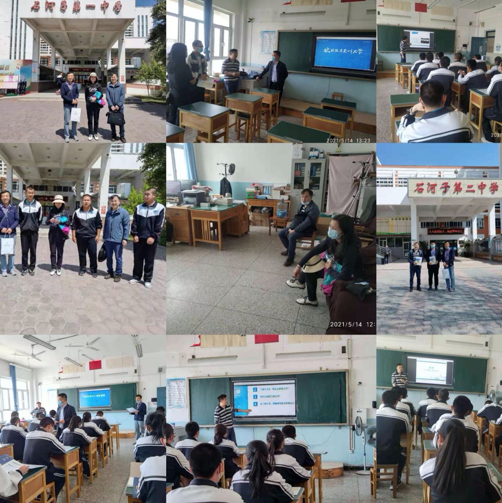 5月14日,三位老师一行赶赴石河子第二中学,与蔡文西老师、教务处仲老师以及班主任进行座谈,老师们介绍了公司的基本情况、办学特色、综合实力以及考生所关心的热点问题,座谈会后,陈进源老师为高三员工做招生宣讲和题为“大学数学之面面观”的精彩科普讲座,讲座内容详实,讲解细致,得到师生的广泛好评。之后走访石河子第一中学,与公司教研室主任贾颖沟通交流并发放招宣资料。