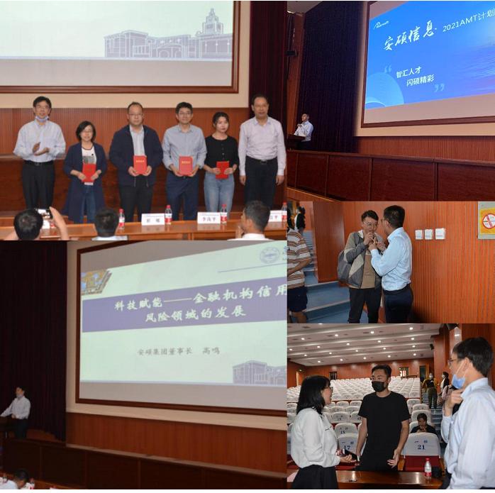 活动上,高鸣董事长与李万同经理共同为获得“安硕奖教金”的四位老师颁奖。之后,高鸣董事长作题为《科技赋能——金融机构信用风险领域的发展》的讲座,将金融行业与数学专业、信息专业相结合,讲述金融行业信用风险领域的发展,他表示,身处社会高速发展的新时代,青年员工要学好专业知识,学以致用,努力为国家贡献力量。随后,活动启动了安硕管培生实习夏令营暨2021届提前批录用仪式,大数据总经理于海军为大家做AMT计划宣讲,他表示十分欢迎兰大学子的加入,为安硕信息注入新的活力,期待携手共创美好明天。