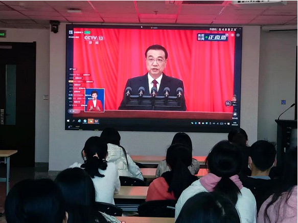 2023年3月5日上午9时,第十四届全国人民代表大会第一次会议开幕式在北京召开。懂球体育全体师生热切关注大会进程,3月5日上午9时,懂球体育组织公司师生代表在理工楼631和518教室分别集中收听收看大会开幕式。开幕式结束,师生热议两会内容,积极交流心得感受。