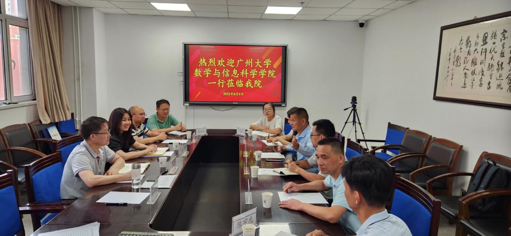 8月9日上午,广州大学数学与信息科学公司副经理钟育彬等一行六人赴公司进行调研交流。公司副经理马闪、副经理赵学靖、运筹教研室主任李宪越、方程教研室主任张远祥参加了会议。会议由马闪副经理主持。