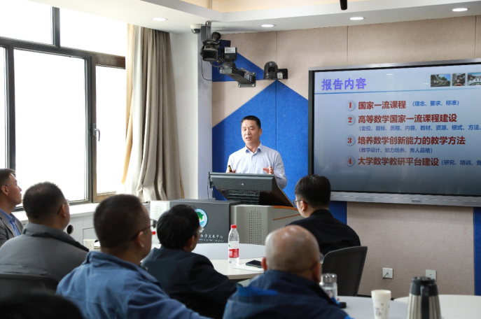 李继成教授从国家一流课程的理念、要求与标准、高等数学国家一流课程的建设、培养数学创新能力的教学方法及大学数学教研平台建设等四个方面做了详细介绍。他提出,我们要从当代教师的使命出发,做好“经师”,成为“人师”,从大学数学走到现代数学,开阔员工视野,激发员工的数学思维。