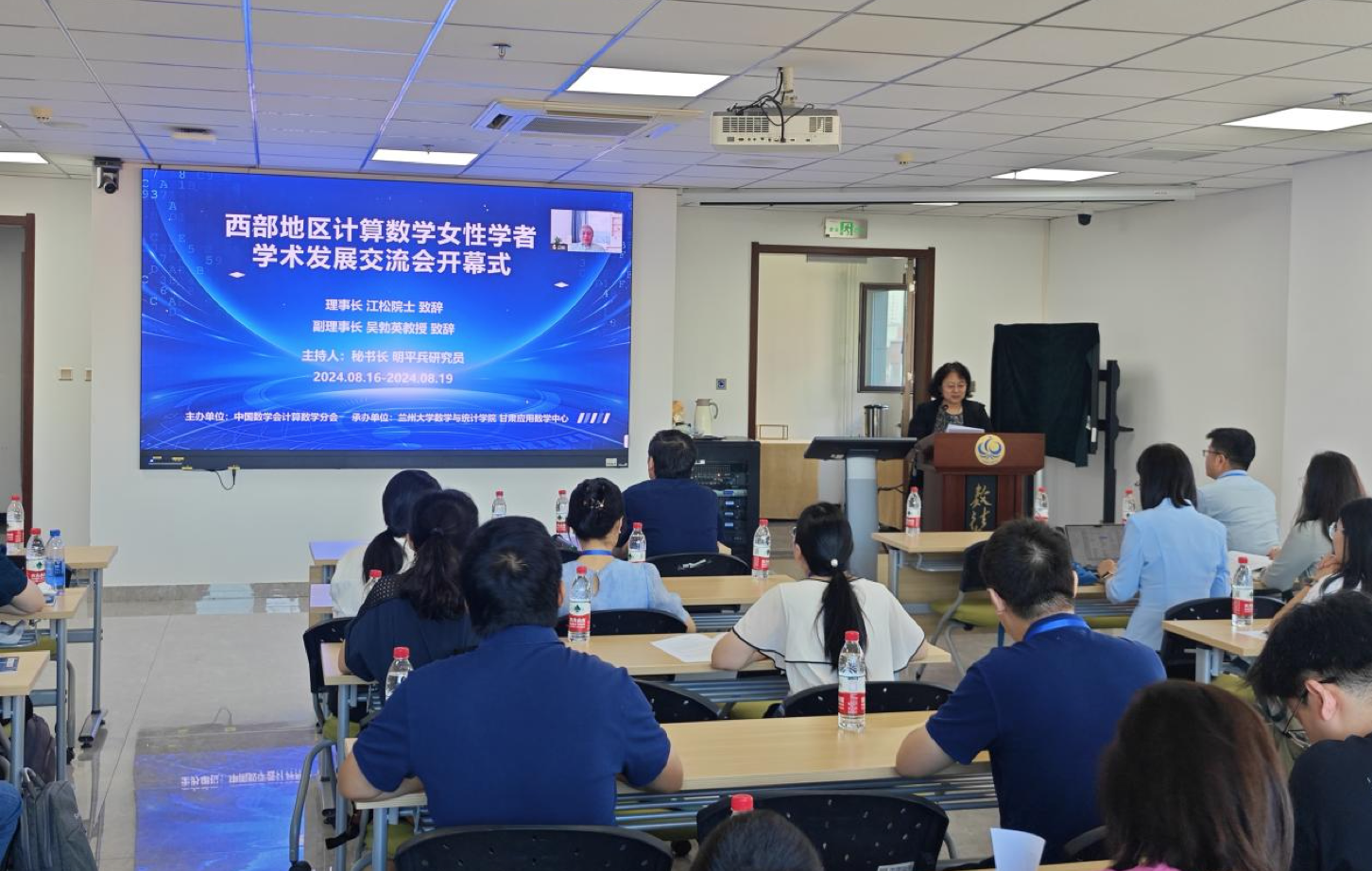 理事长江松院士首先代表中国数学会计算数学分会和国家自然科学基金委数学科学处向“西部地区计算数学女性学者学术发展交流会”的召开表示热烈祝贺!并向各位与会数学工作者、向会议的承办单位懂球体育和甘肃应用数学中心表示感谢!江松院士指出,本次会议旨在加强西部地区计算数学女性学者与同行的学术交流,鼓励西部地区女性学者树立自立、自强、自信的精神品格,促进女性学者人才的成长,激发女性学者在相关领域中贡献更多的“她智慧”和“她力量”,此次会议将数学、西部与女性这三个主题结合在一起,不仅关注西部地区数学工作者之间的交流合作,还特别鼓励西部女性从事计算数学与交叉应用研究,是一次难得的学术盛会。江松院士强调,数学,特别是计算数学,作为一门基础学科是创新驱动发展战略的动力源泉,在科学技术、工业和应用领域中具有不可或缺的重要作用,对推动科技创新和经济社会发展至关重要。他特别指出,在西部地区开展计算数学研究,虽然交流没有北上广那么多,平台可能也比不上北上广,但西部地区也有其独有的优势,那就是可以静下心来做学问,他相信在西部地区坚持做计算数学研究的数学工作者,只要静下心来,心无旁骛的做研究,持之以恒,一定能取得优异的成果。最后,江松院士殷切期望西部地区的计算数学工作者,特别是女性计算数学工作者,自强、自立、自信,肩负使命,为西部地区乃至全国的计算数学的发展不懈努力,为建设科技强国作出更大的贡献,并预祝本次交流会圆满成功。