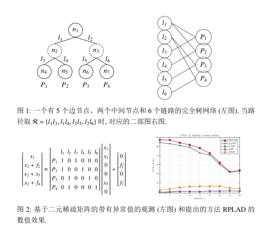 该论文聚焦组合压缩感知中的稀疏恢复问题。围绕这一问题,研究团队基于拟正则无损膨胀图发展了新的理论分析工具,提出了鲁棒的惩罚最小绝对偏差模型及其求解方法,为复杂噪声环境下的稀疏恢复提供了新的理论支撑。论文不仅在理论上建立了左拟正则无损膨胀图条件下的相关性质与恢复误差分析框架,还将所提出的方法应用于网络断层扫描中的链路时延估计问题。研究结果表明,该方法在复杂扰动环境下具有良好的鲁棒性与应用前景,为无线通信、网络监测等实际问题提供了新的研究思路。