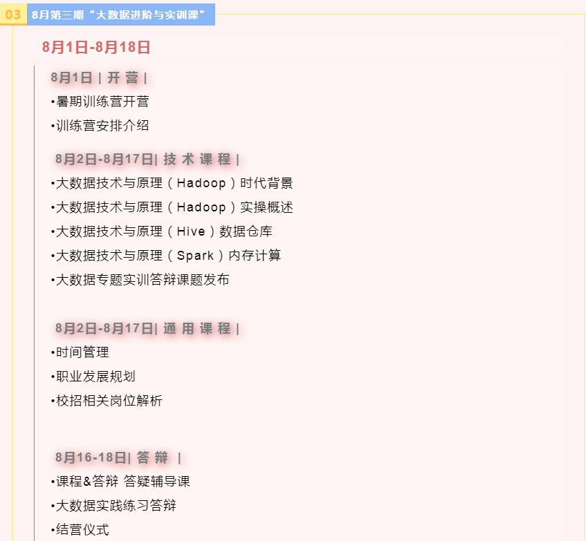 (1)思特奇暑期训练营:面向全国各高校23、24届毕业生,通过腾讯会议线上授课和社群答疑结合的方式授课,邀请技术、业务专家授课辅导,讲授课程涉及行业前沿理论、热门技术实践、求职岗位解析及职业能力提升等方面。参加训练营可获得职业化素质评估报告、上市公司官方实训认证证书,优秀者可提前锁定思特奇校招offer。