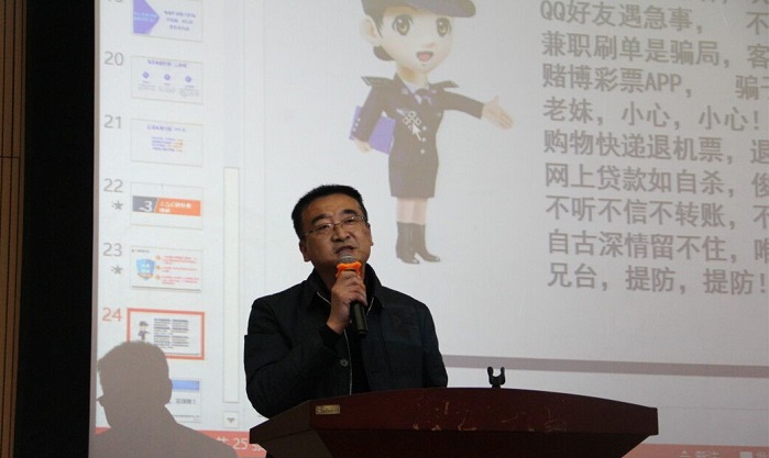 2019年3月17日,懂球体育召开本科生大会暨安全教育、学风教育宣讲会。公司联合保卫处邀请到榆中县公安局反电诈中心民警向同学们开展了反诈骗安全主题教育宣讲会。保卫处副处长薛峰、公安局梁成军警官以及四位民警同志、公司辅导员周渊以及全院本科生参加了会议。
