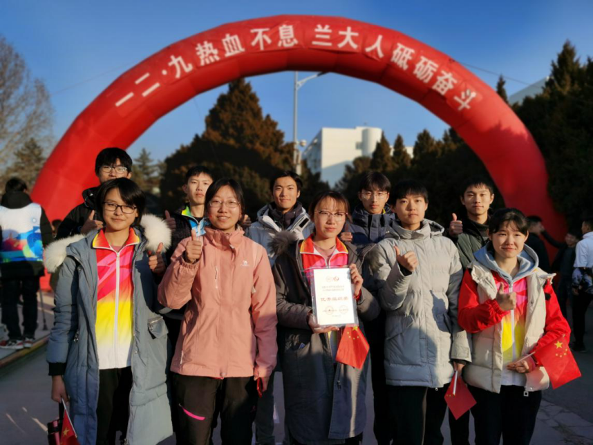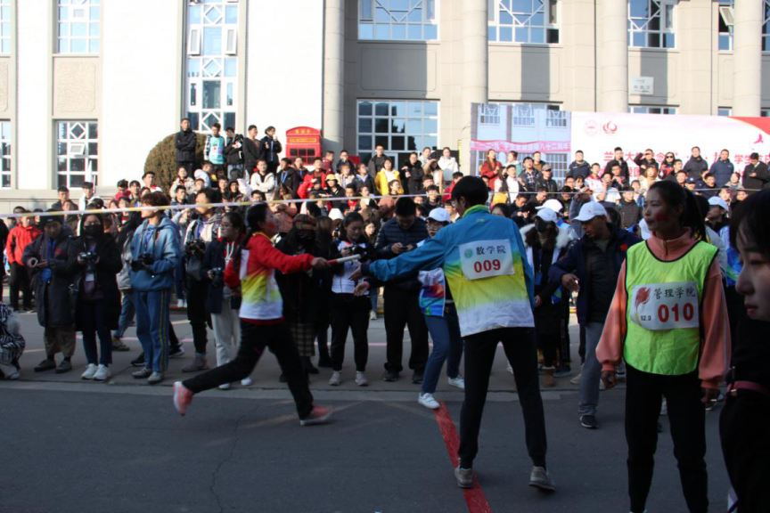 开幕式开始,知识竞赛和历史视频带领同学们重温了那段光荣岁月。紧接着,在场同学集体合唱爱国歌曲《我和我的祖国》,同学们用铿锵有力的歌声汇成最坚定的信念,长跑比赛也拉开了帷幕。每一位参赛运动员都竭尽全力,不畏严寒,奋勇拼搏,彰显着艰苦奋斗的兰大精神。懂球体育的运动员们步幅矫健有力,拼尽全力,稳中求进。同学们热情洋溢的呐喊助威声也此起彼伏。最终,比赛的颁奖典礼在闻欣堂门口举行,取得优秀成绩的公司受到了表彰。此次比赛在老师同学们的欢声笑语中落下帷幕。