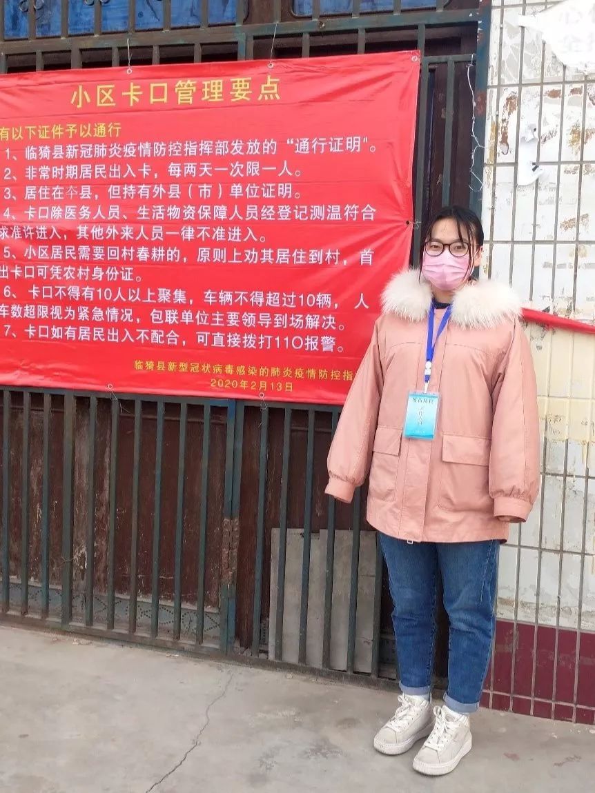 “今年春节,我们不幸地暴发了疫情。疫情不断蔓延,但是我们举国上下,团结一心、众志成城,共同抵御疫情!看着全国各地的医护人员奔赴武汉,心中暖流涌动,真是一方有难八方支援。作为一名青年员工,虽没有能力亲赴战场,但是我也要为我的祖国、为社会贡献自己的一份力量!于是便和小伙伴们一起主动去做志愿服务,在老家农村看守登记往来车辆。冬日的风甚是寒冷,但是心确是暖的,看到人们自觉戴口罩、有防护意识,一起阻止疫情蔓延,为社会做贡献。我相信通过我们每一个人共同的努力我们的祖国会一点一点好起来的! ”