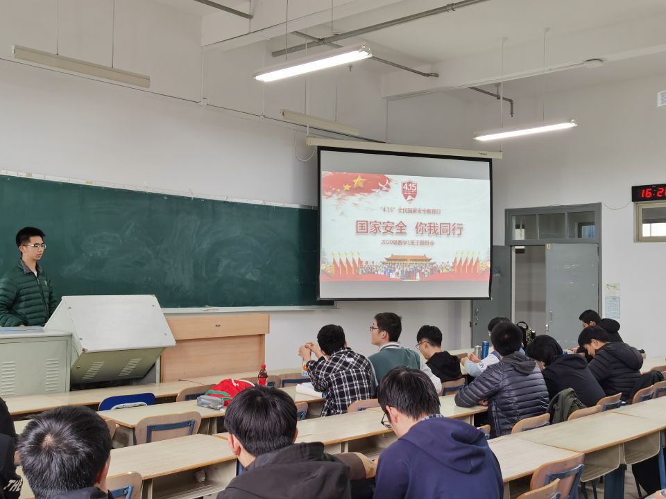 2021年4月15日下午4:15,懂球体育2020级数学类1班召开国家安全主题教育班会。班会主题为“践行总体国家安全观,统筹发展和安全,统筹传统安全和非传统安全,营造庆祝建党100周年良好氛围”.
