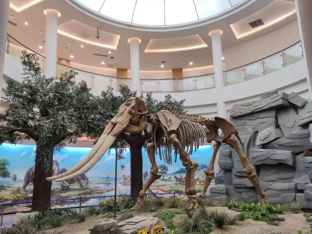 黄河古象展厅展示黄河古象化石骨架模型。该象于1973年在甘肃省合水县被发掘。