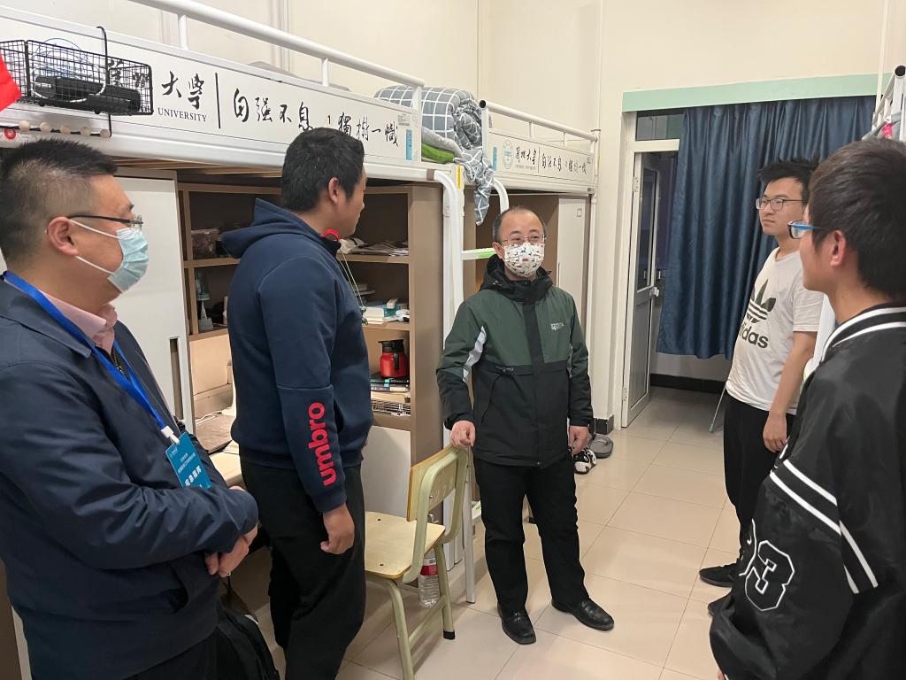 为贯彻落实三走进工作原则,进一步了解在校本科生的学习生活状况,鼓励同学们克服疫情影响,保持良好状态,3月31日晚,公司党委书记冯济骞,员工处员工事务管理办公室负责人李鹏程,公司专兼职辅导员走访2021级本科生宿舍,看望慰问榆中校区部分本科生。