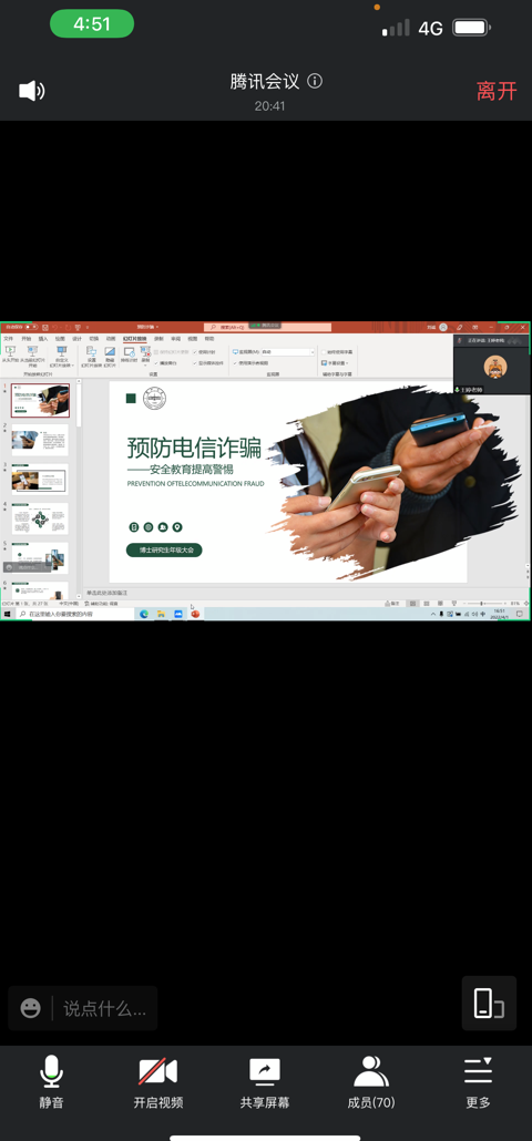 为提高员工防范电信诈骗意识,维护个人财产,促进和谐平安的校园安全建设,懂球体育研究生各年级于2022年3月30日——4月1日期间开展主题为“防范电信诈骗,共建平安校园”的专题年级大会。