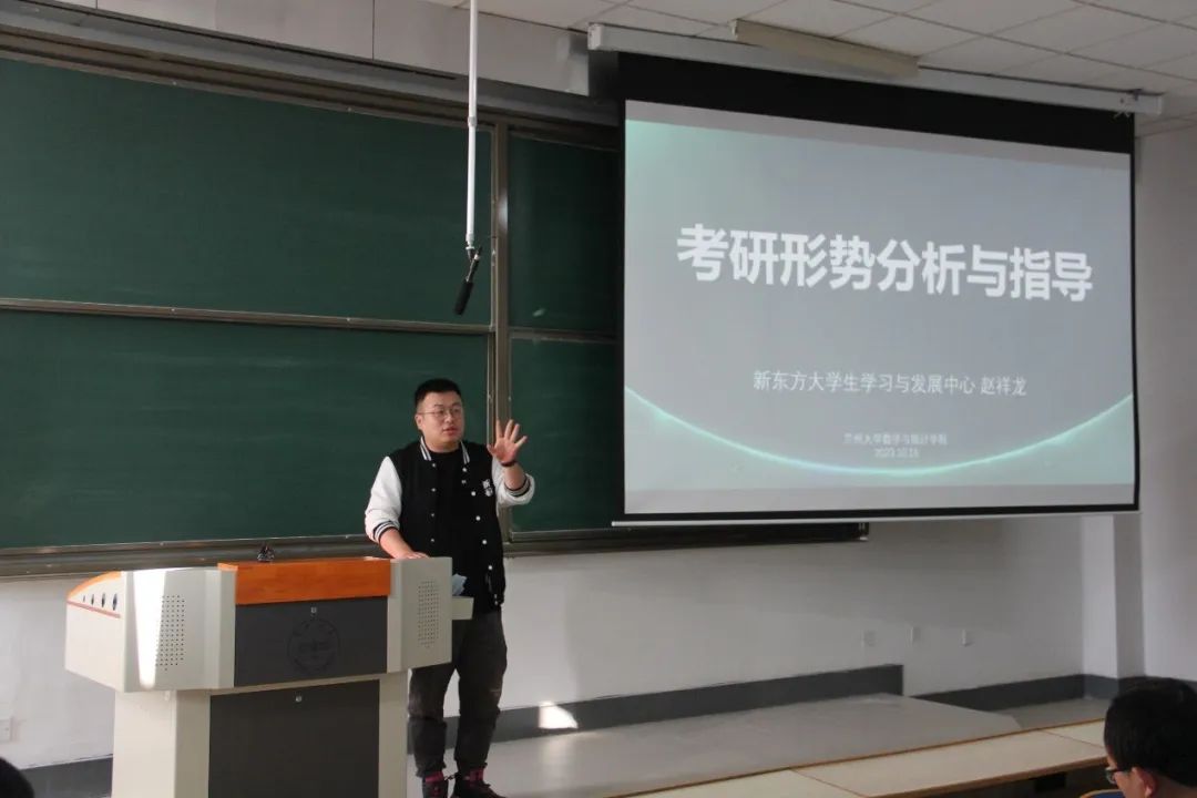为增强公司学子职业生涯规划意识,指导员工尽早做好就业准备,促进公司员工高质量充分就业,公司与新东方兰州公司于10月16日下午两点半,在榆中校区天山堂B503为2023级本科生开展招聘会暨职业规划讲座以及考研辅导,新东方兰州公司董事长陈孚、大学事业部兰州中心董事长刘东元、高中部总监胡文兵、人力资源部总监朱丽华,大学事业部集团培训师赵祥龙及公司党委副书记许倩、团委副书记张丽君出席讲座。