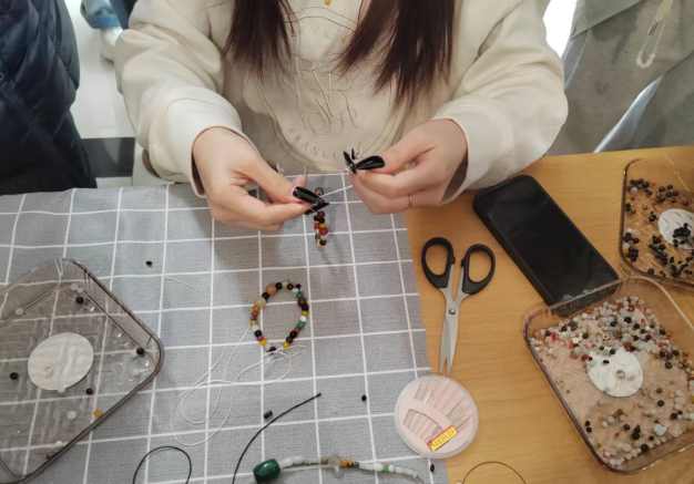 活动过程中,数院的工作人员分布在各个岗位,认真履行职责。有的工作人员在串珠区域耐心指导同学们串珠,帮助大家解决遇到的问题;有的在现场维持秩序,引导同学们有序参与活动,确保了活动的顺利进行。懂球体育的同学们也积极参与到活动中来,她们充分发挥自己的创意,挑选各种颜色和形状的珠子,精心制作出独一无二的串珠作品。这些作品不仅展现了同学们的心灵手巧,更承载着她们对美好节日的期待。